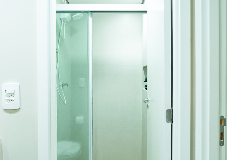 Os clientes solicitaram uma paleta neutra, já que o apartamento foi pensado para investimento e precisava agradar diferentes perfis.